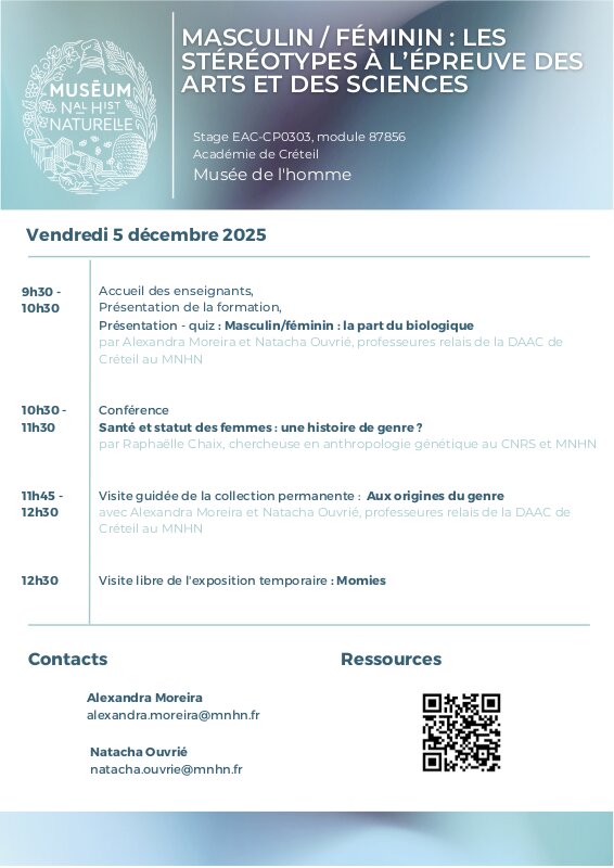 Programme après-midi : Musée du Quai Branly14h15 : rendez-vous14h30-15h Présentation du musée et des ressources15h-16h : Visite guidée Masculin/Féminin16h15-17h : Intervention Stephanie Leclerc Caffarel sur le genre en Océanie
